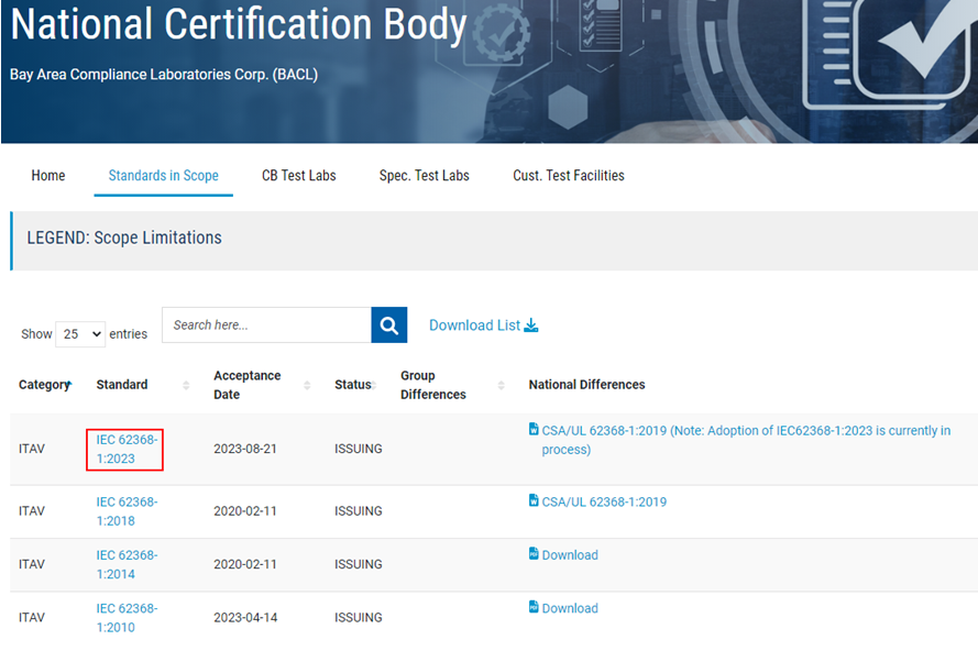 BACL已獲得IEC62368-1第四版發(fā)證資質(zhì)