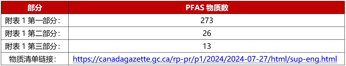 報告要求適用于通知(Notice)附表1中列出的 312 種 PFAS 化合物,附表1分為三部分,每部分包含的PFAS物質(zhì)清單不同: