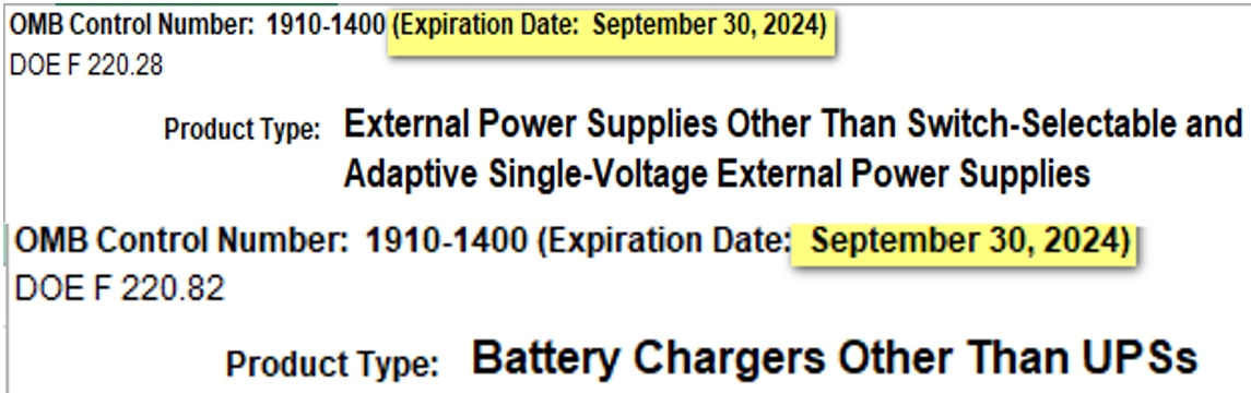 外部電源(EPS),電池充電器(BCS)屬于具有現有認證法規的基本型號的產(chǎn)品?,F有的認證報告模板將于9/30/2024失效,也即將按修訂要求更新其認證報告模板。