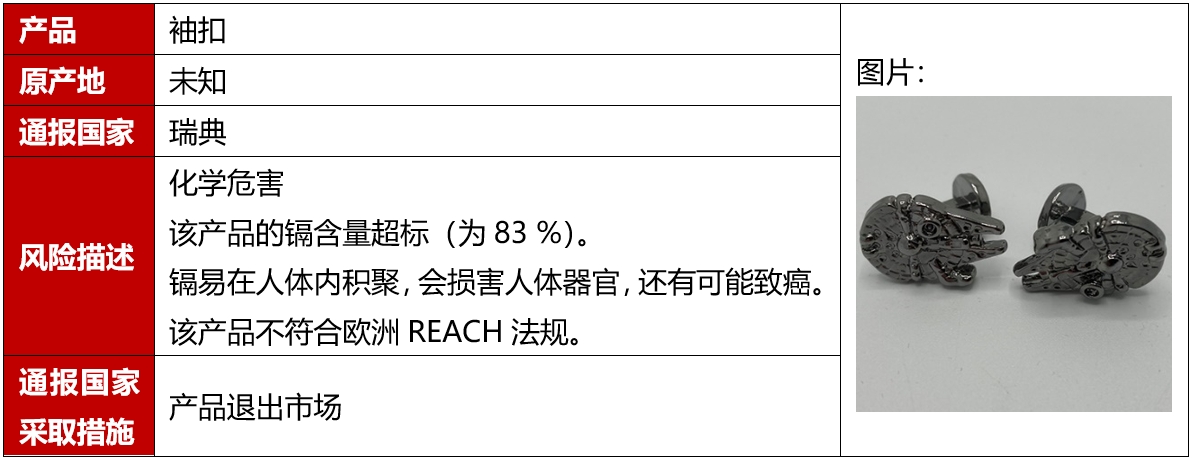2024年9月,歐盟、美國、加拿大和澳洲共發(fā)生8例飾品召回案例,這些召回發(fā)生在歐盟和美國,且都是因為存在化學(xué)危害而被召回的。