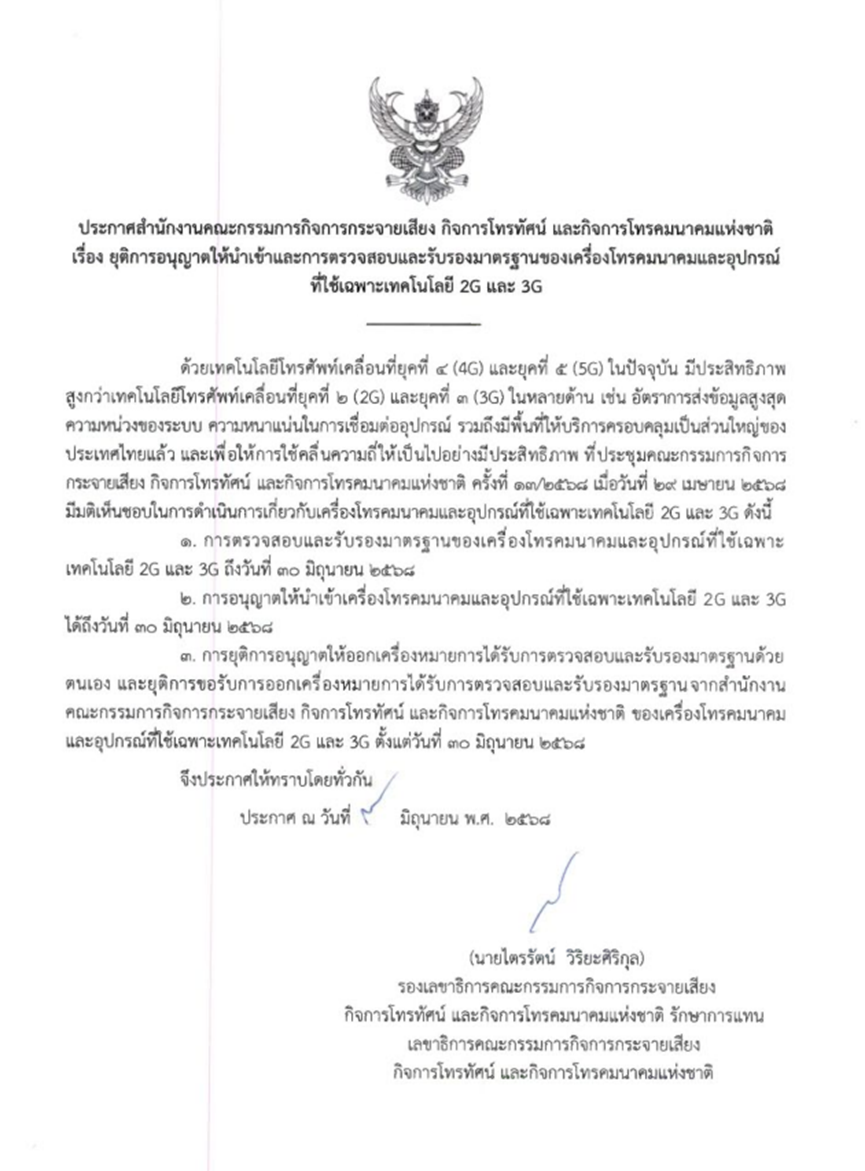 近日,泰國國家廣播和電信委員會(huì ) (NBTC) 宣布了一項重大監管變化,自2025年6月30日起,將正式禁止進(jìn)口僅在2G和3G網(wǎng)絡(luò )上運行的電信設備和裝置。此外,NBTC將不再為此類(lèi)設備頒發(fā)檢驗和認證標志。
