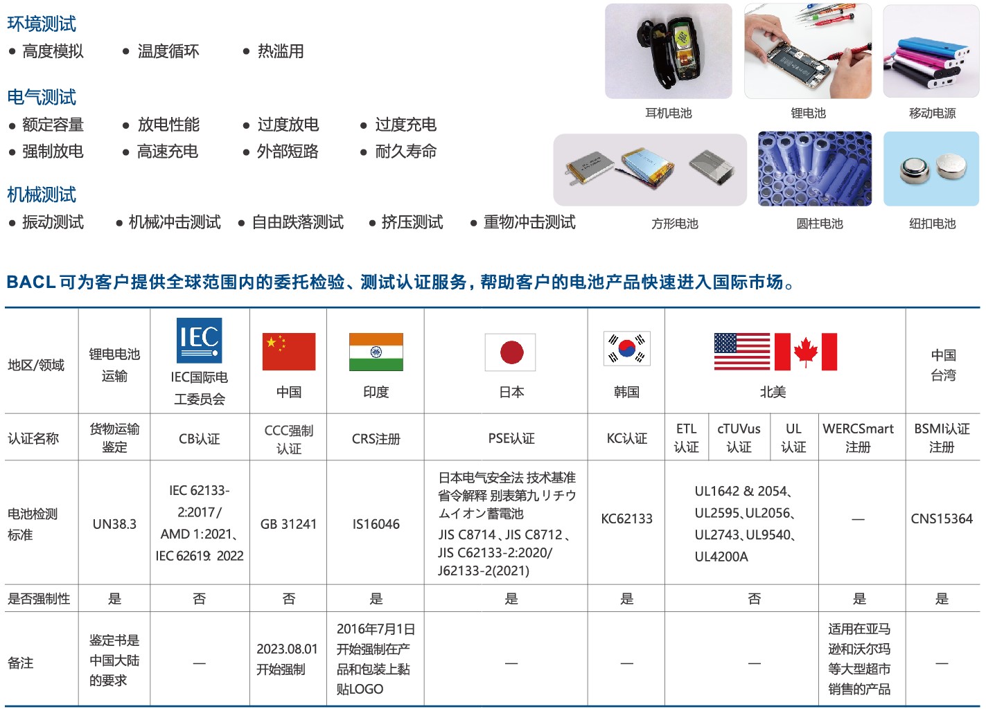 BACL電池檢測認證服務(wù)優(yōu)勢: