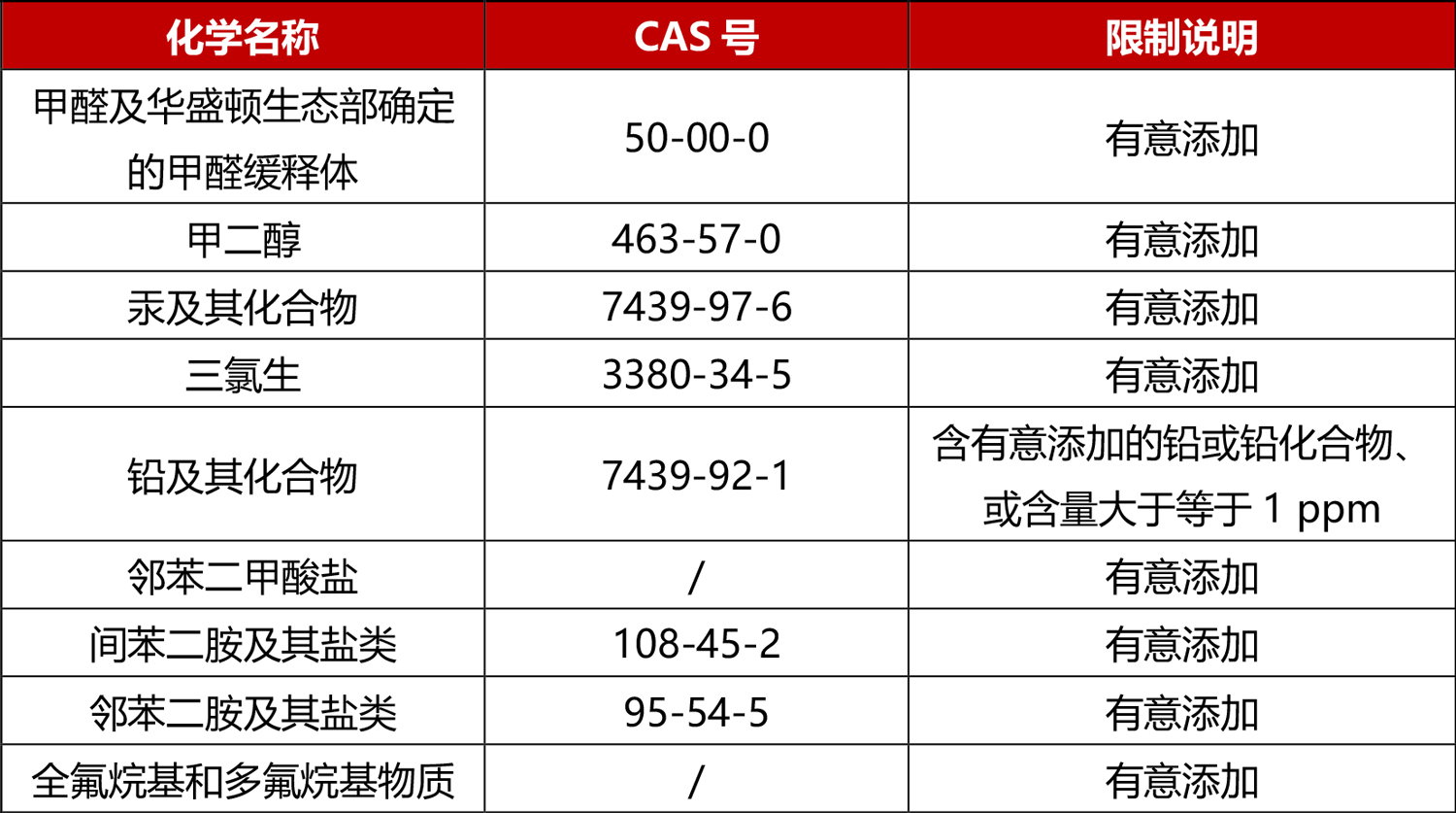 2025年8月28日,華盛頓生態(tài)部通過(guò)了一項新規定,第173-339章WAC:化妝品限制,確定了化妝品中禁止有意添加的甲醛釋放體清單。該限制將于2027年1月1日生效,州內零售商的現有庫存化妝品可銷(xiāo)售至2027年12月31日。