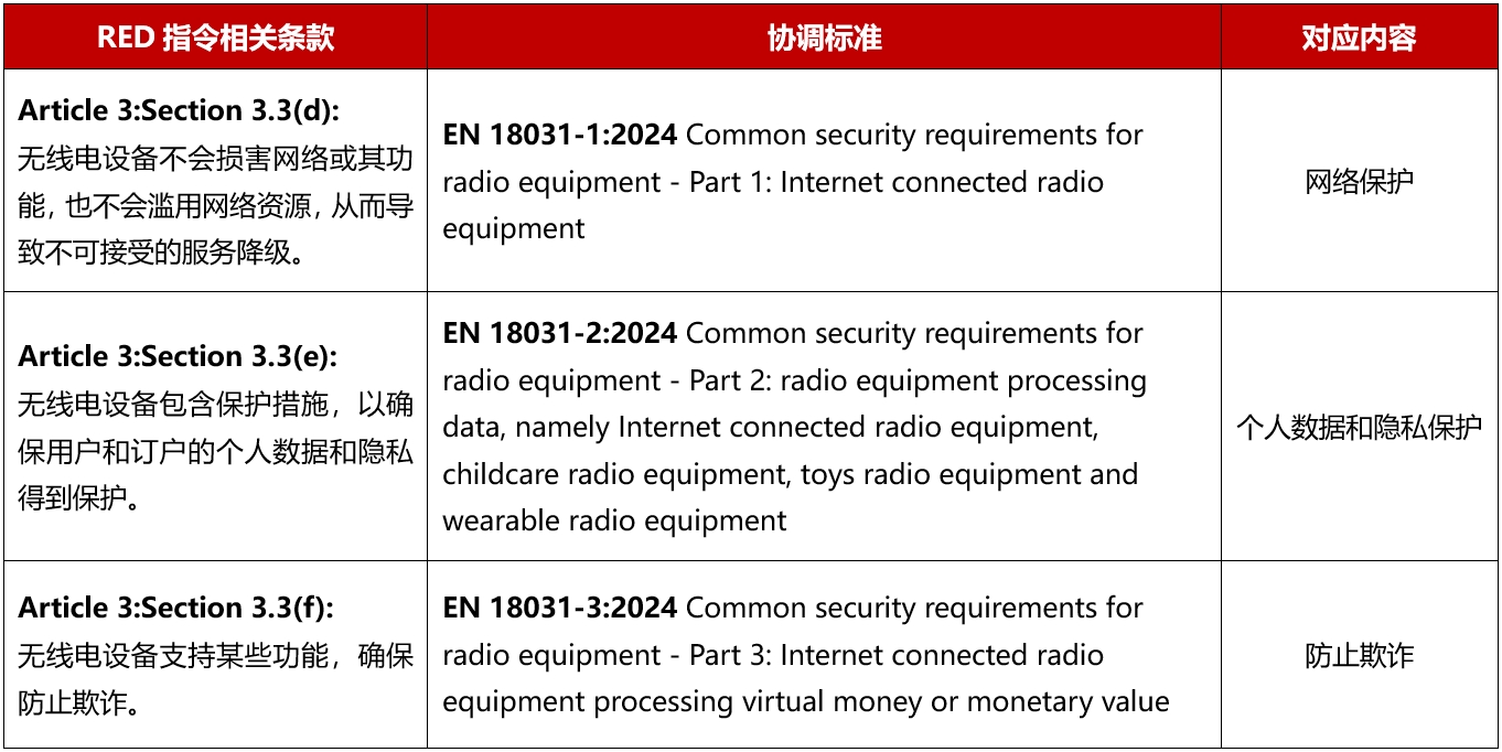 歐盟于2022年1月發(fā)布了RED指令的補充授權法案(EU)2022/30,明確規定相關(guān)產(chǎn)品的制造商在設計和生產(chǎn)中必須考慮到RED指令的三點(diǎn)網(wǎng)絡(luò )安全要求: