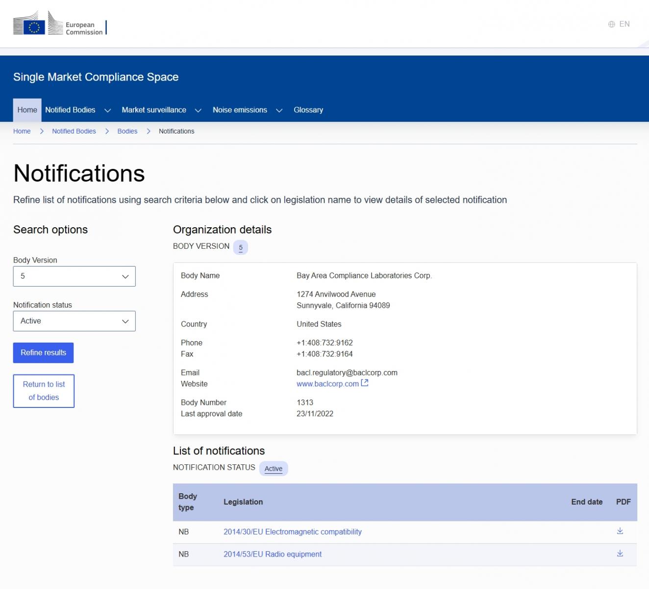 BACL NB機構歐盟官網(wǎng)列名