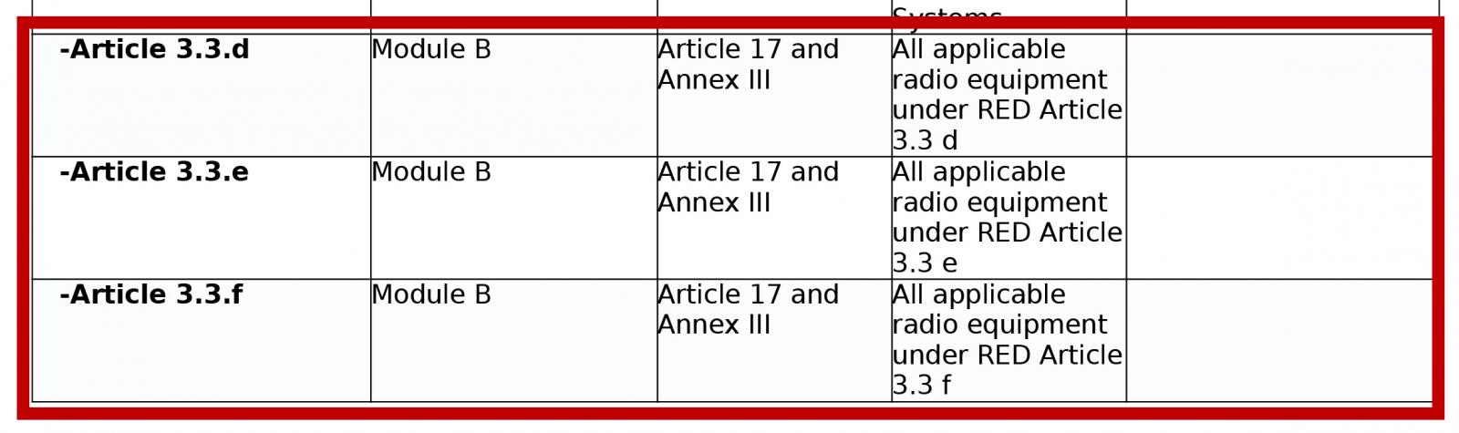 - 嚴格遵循RED指令,確保產(chǎn)品完全符合Article 3.3(d)(e)(f)條款的各項要求;