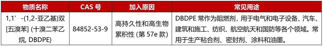 2025年11月5日,歐洲化學(xué)品管理局(ECHA)正式將1,1’-(1,2-亞乙基)雙[五溴苯](十溴二苯乙烷,DBDPE)納入REACH高度關(guān)注物質(zhì)(SVHC)清單,至此,REACH高度關(guān)注物質(zhì)清單正式增至251項。