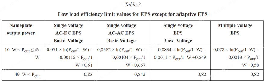 表2 除自適應EPS外,EPS的低負載效率限值