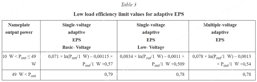 表3 自適應EPS的低負載效率限值