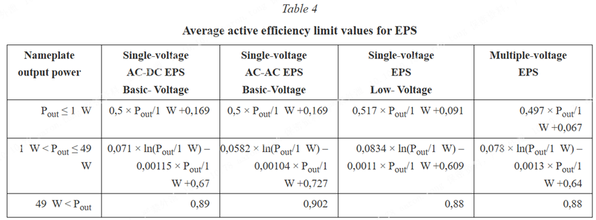 表4 EPS 的平均效率限值